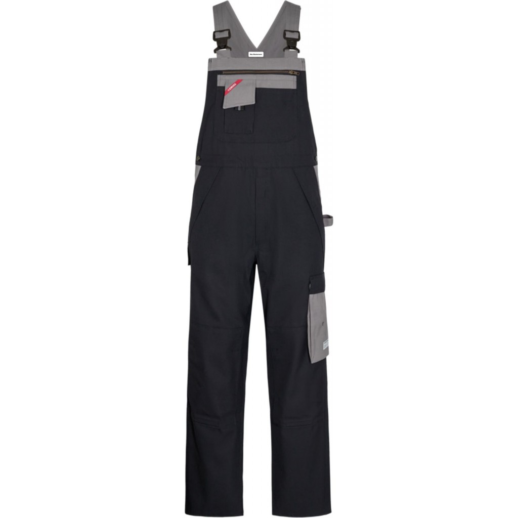 Latzhose mit Brusttasche mit Reissverschluss, zwei mit Patte verdeckte Einschubtaschen, verstärkte Gesässtaschen mit Patte, Hammerschlaufe, Zollstocktasche, Knieverstärkung/Knietaschen mit Klettverschluss unten. Funktionelle Details bei Taschen und Bund verhindern das Festsetzen der Funken. Antistatisch, flammhemmend und schützend vor Aerosolen, Spray und leichten Spritzern von Chemikalien.