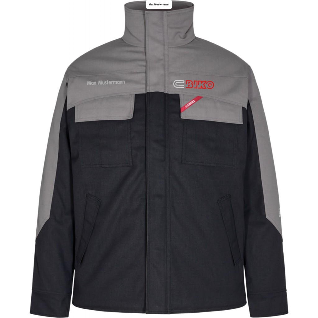 Winterjacke mit doppelter Knopfleiste, verdeckten Druckknöpfen und Metallreissverschluss vorne. Brusttaschen mit Patte und Klettverschluss, beide mit Handytasche. Zwei Innentaschen mit Reissverschluss. Zwei Seitentaschen mit Patte und Klettverschluss. Die Jacke ist mit flammhemmendem Steppfutter sowie einer Membrane ausgestattet, die Wasserdurchtritt verhindert. Praktische Details an Taschen und Nähten verhindern, dass Funken hängen bleiben. Antistatisch, flammhemmend und schützend vor Aerosolen, Spray und leichten Spritzern von Chemikalien.